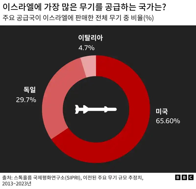 ✅ 독일은 미국 다음으로 이스라엘에 가장 많은 무기를 공급한 국가입니다. 특히, 올라프 숄츠 독일 총리는 이번 전쟁 내내 이스라엘의 자기 방어권을 굳게 지지하고 있죠.
